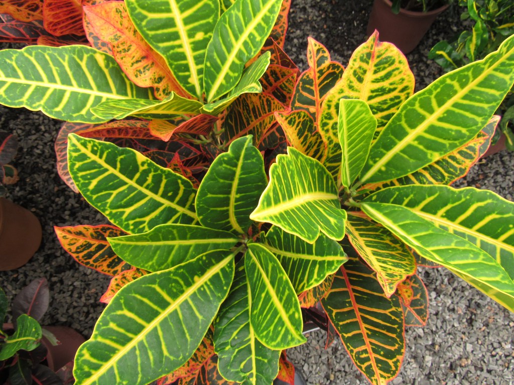 Folhagens multicoloridas são um acréscimo a este fundo de cena todo verde. Várias cores nas folhas, como nos crótons (Codieum variegatum), dracenas (Dracaena marginata) e eleagno (Eleagnus salignus). Distribuídas estrategicamente estas plantas tornam o espaço mais interessante.