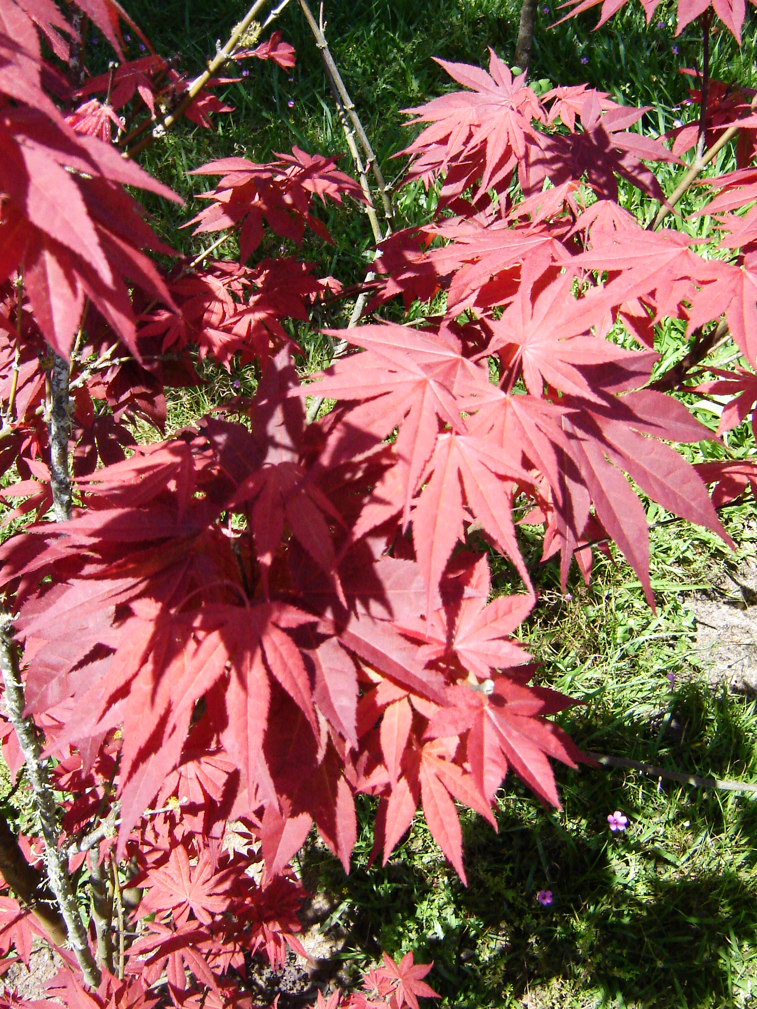 Acer (Acer palmatum var. Atropurpureum), folhagem decorativa sem flores chamativas, com característica caducifólia, de 5 a 10,0 metros de altura.