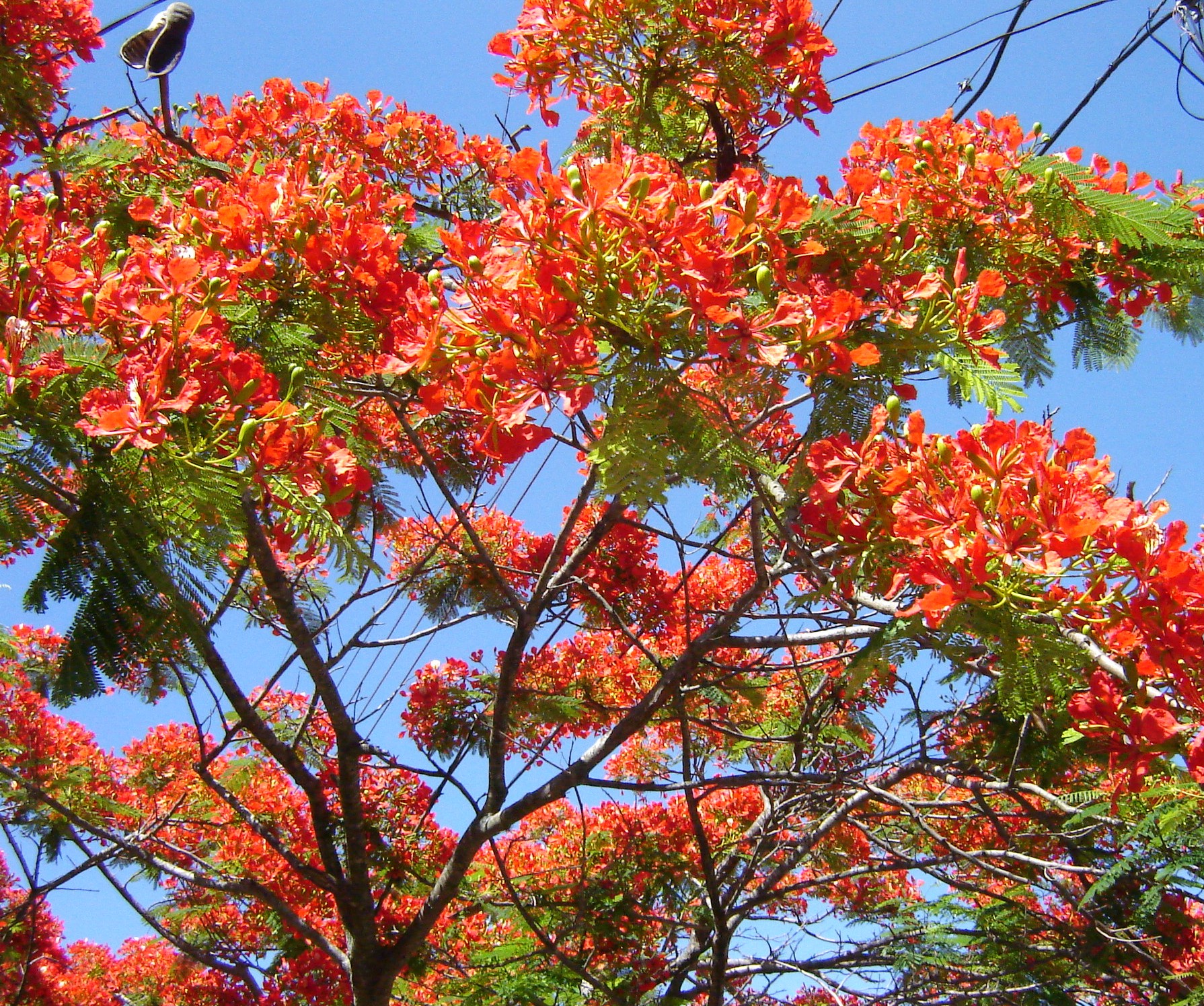 1.Flamboyant (Delonix regia), família Caesalpinoideae, originária de Madagascar. 10 a 12 metros de altura e flores vermelhas. Floresce durante o verão.